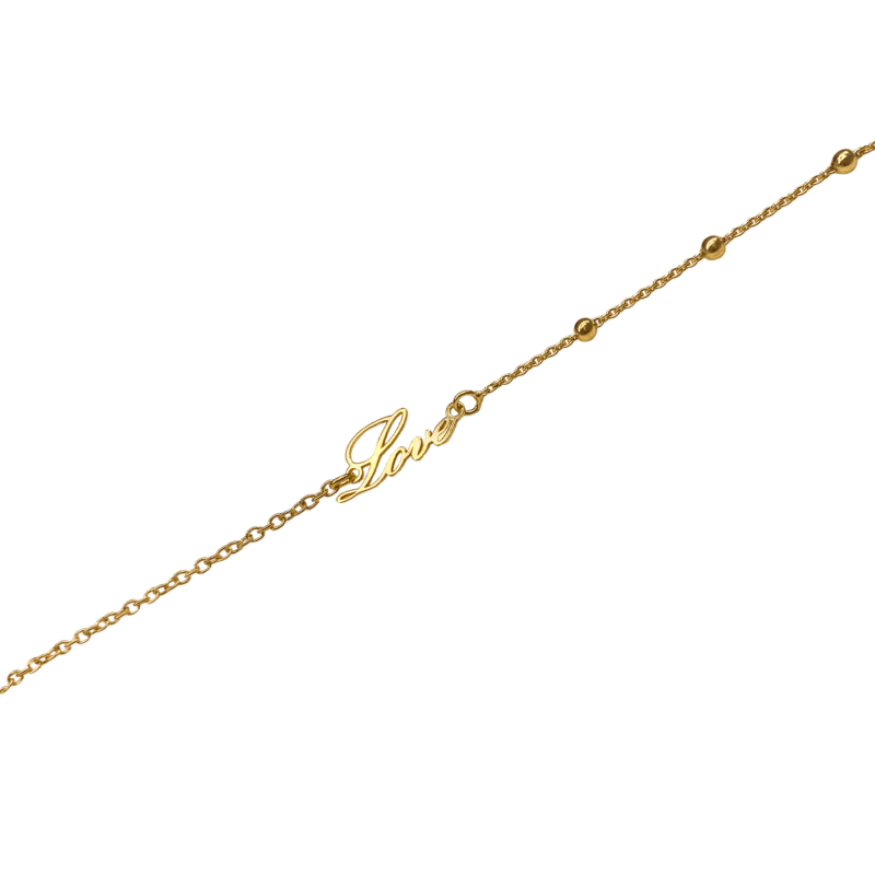 Jemný strieborný pozlátený náramok AG 925/1000 AGNI464103 s drobnými guličkami a nápisom love je nežným symbolom lásky. Dĺžka 17 + 3 cm umožňuje pohodlné nastavenie, zapínanie na karabínku zaistí bezpečné nosenie.